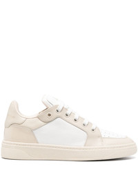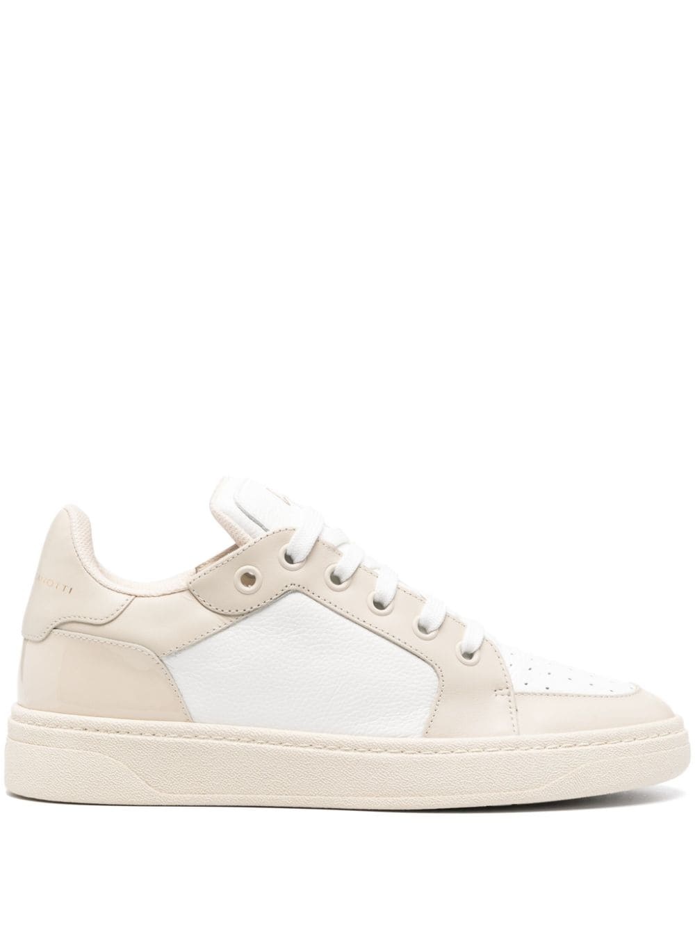 GZ94 lace-up low-top sneakers Highlights - White/beige - Calf leather - Front lace-up fastening - Panelled design - Padded ankle - Branded heel counter - Logo-print tongue - Perforated toebox - Round toe - Branded leather insole - Logo at the rubber sole Made in Italy Composition Sole: Rubber 100% Lining: Fabric 100%, Calf Leather 100% Outer: Calf Leather 100%, Patent Calf Leather 100% SIZE & FIT Measurement HEEL 1.37 in(3.5 cm) Sole height 0.98 in(2.5 cm)
