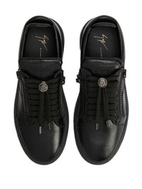 GZ94 double-zip low-top sneakers Highlights - Black - Leather - Logo patch at the tongue - Round toe - Front lace-up fastening - Side zip fastening - Branded insole - Flat rubber sole Made in Italy Composition Outer: Leather 100% Sole: Rubber 100% Lining: Leather 100%