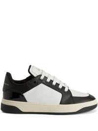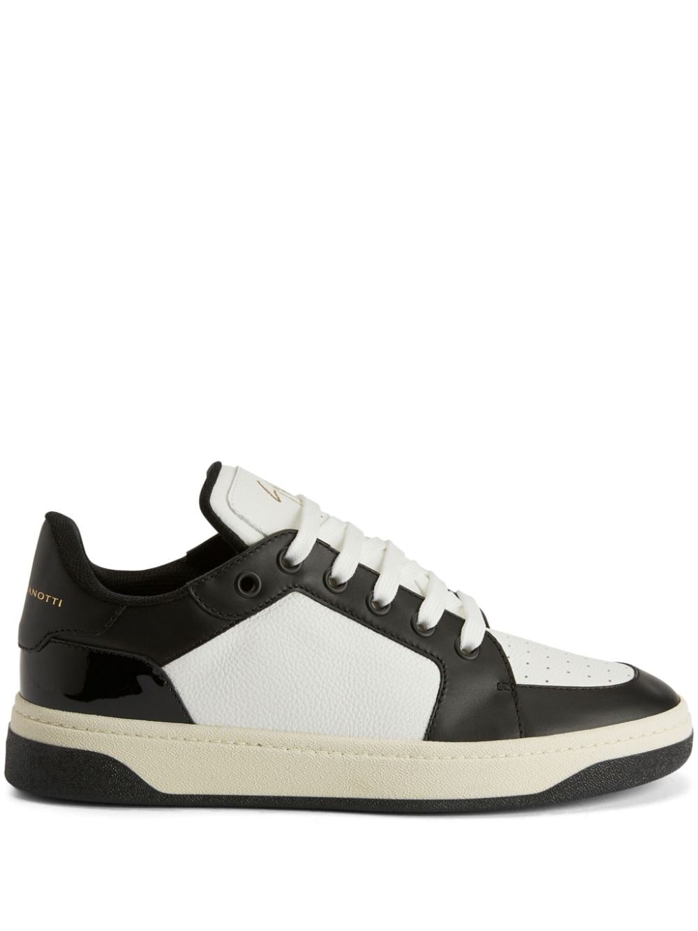 GZ94 sneakers Highlights - White/black - Leather - Colour-block panelled design - Patent finish/smooth grain/pebbled texture - Logo-print tongue - Round toe - Perforated toebox - Front lace-up fastening - Branded heel counter - Branded insole - Flat rubber sole Made in Italy Composition Leather 100%
