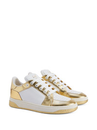 GZ94 lace-up low-top sneakers Highlights - Gold-tone/off-white - Leather - Colour-block design - Perforated detailing - Logo lettering - Round toe - Front lace-up fastening - Branded insole - Flat rubber sole Made in Italy Composition Outer: Leather 100% Sole: Rubber 100% Lining: Fabric 100%