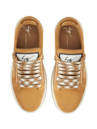 GZ94 double-zip low-top sneakers Highlights - Camel brown - Velvet - Logo patch at the tongue - Round toe - Front lace-up fastening - Side zip fastening - Flat rubber sole Made in Italy Composition Sole: Rubber 100% Outer: Velvet 100% Lining: Fabric 100%