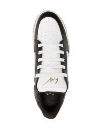 GZ94 lace-up low-top sneakers Highlights - White/black - Calf leather - Front lace-up fastening - Colour-block panelled design - Contrasting trim - Contrasting branded heel counter - Logo patch at the tongue - Perforated toebox - Round toe - Branded insole - Rubber outsole Made in Italy Composition Lining: Calf Leather 100%, Fabric 100% Outer: Calf Leather 100% Sole: Rubber 100% SIZE & FIT Measurement HEEL 1.37 in(3.5 cm) Sole height 0.98 in(2.5 cm)