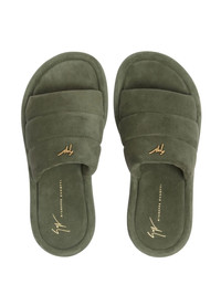 Harmande quilted suede slides Highlights - Olive green - Suede/leather - Quilted panels - Gold-tone logo plaque - Branded footbed - Open toe - Flat sole - Slip-on style Made in Italy Composition Lining: Suede 100% Outer: Suede 100% Sole: Leather 100%