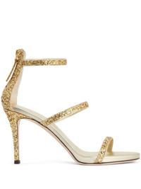 Harmony 90mm glitter sandals gold leather glitter detailing almond toe strappy design rear zip fastening high heel Made in Italy Composition Outer: Glitter 100% Sole: Leather 100% Lining: Leather 100%