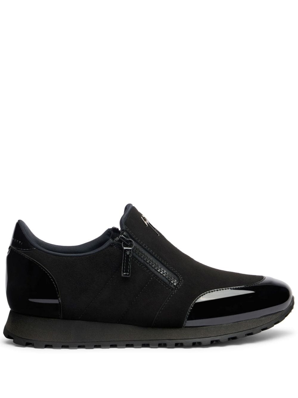 Ilde Run double-zip low-top sneakers Highlights - Black - Suede - Patent leather trim - Logo plaque - Logo print to the rear - Debossed logo to the rear - Round toe - Front zip fastening - Branded leather insole - Rubber sole Made in Italy Composition Outer: Suede 100% Lining: Leather 100% Sole: Rubber 100%
