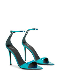 105mm Intriigo Strap sandals Highlights - Teal blue - Metallic effect - Buckle-fastening ankle strap - Pointed toe - Branded leather insole - 105mm high stiletto heel Made in Italy Composition Other fibres 100%