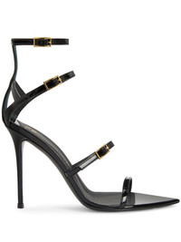 105mm Intriigo Abely sandals Highlights - Black - Patent finish - Gold-tone hardware - Open pointed toe - Buckle-fastening ankle straps - Branded leather insole - 105mm high stiletto heel - Leather sole Made in Italy Composition Other fibres 100% SIZE & FIT Measurement HEEL 4.13 in(10.5 cm)