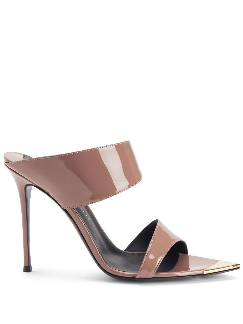 90mm Intriigo Allure sandals Highlights - Taupe brown - Leather - Patent finish - Open toe - Branded insole - 90mm stiletto heel - Leather outsole - Slip-on style Made in Italy Composition Outer: Polyurethane 100% Sole: Leather 100% SIZE & FIT Measurement HEEL 3.54 in(9 cm)