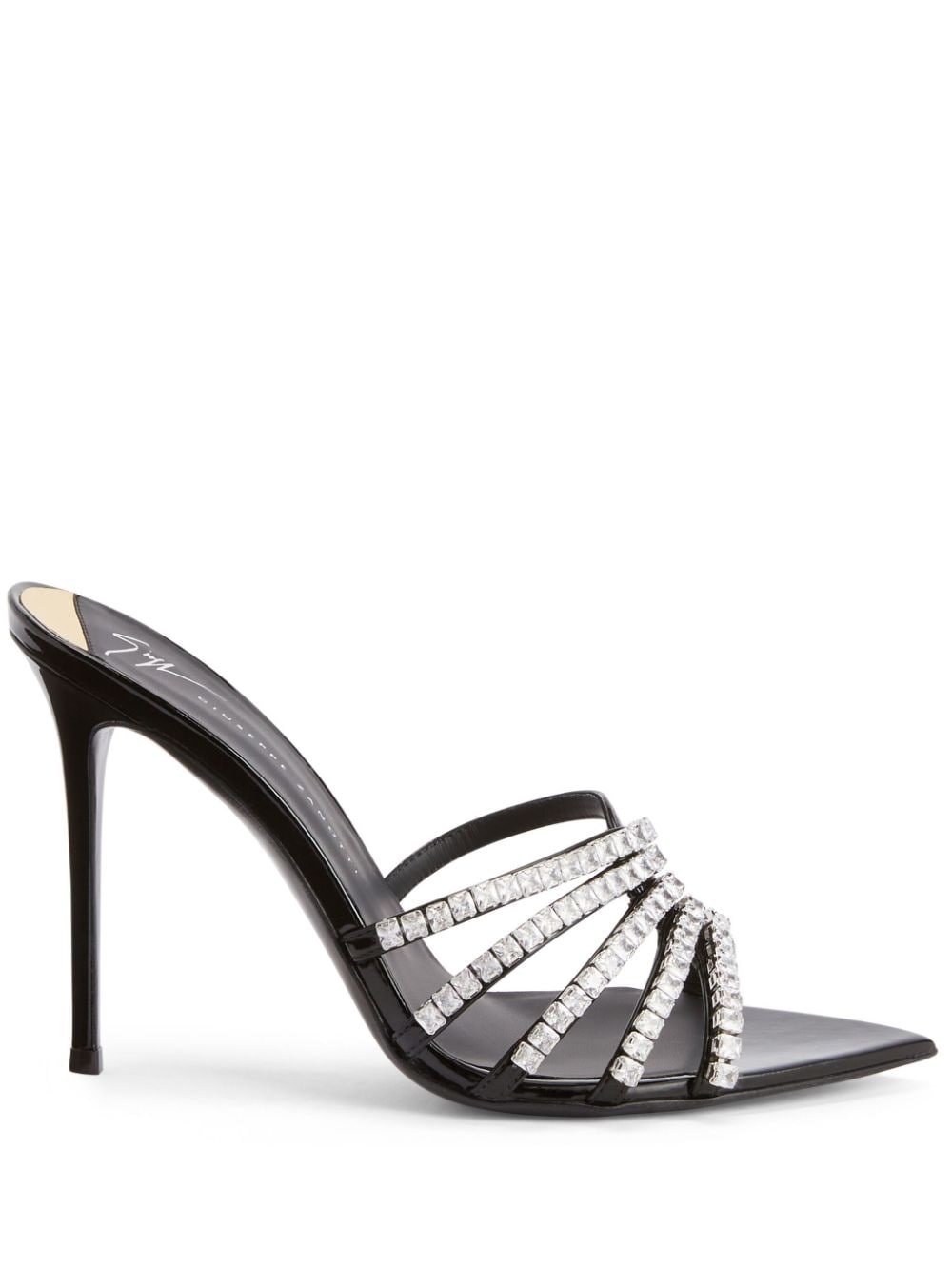105mm Intriigo Baguette crystal-embellished sandals Highlights - Black - Leather - Crystal embellishment - Open toe - Slip-on style - Branded footbed - 105mm stiletto heel - Leather sole Made in Italy Composition Other fibres 100% SIZE & FIT Measurement HEEL 4.13 in(10.5 cm)