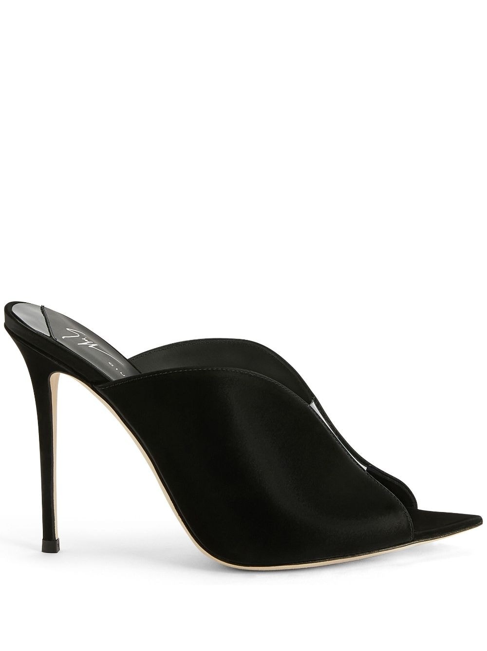 105mm Intriigo Muse sandals Highlights - Black - Leather - Laminated finish - Open toe - Pointed toe - Branded leather insole - 105mm high stiletto heel Made in Italy Composition Outer: Fabric 100% Sole: Leather 100% Lining: Fabric 100%