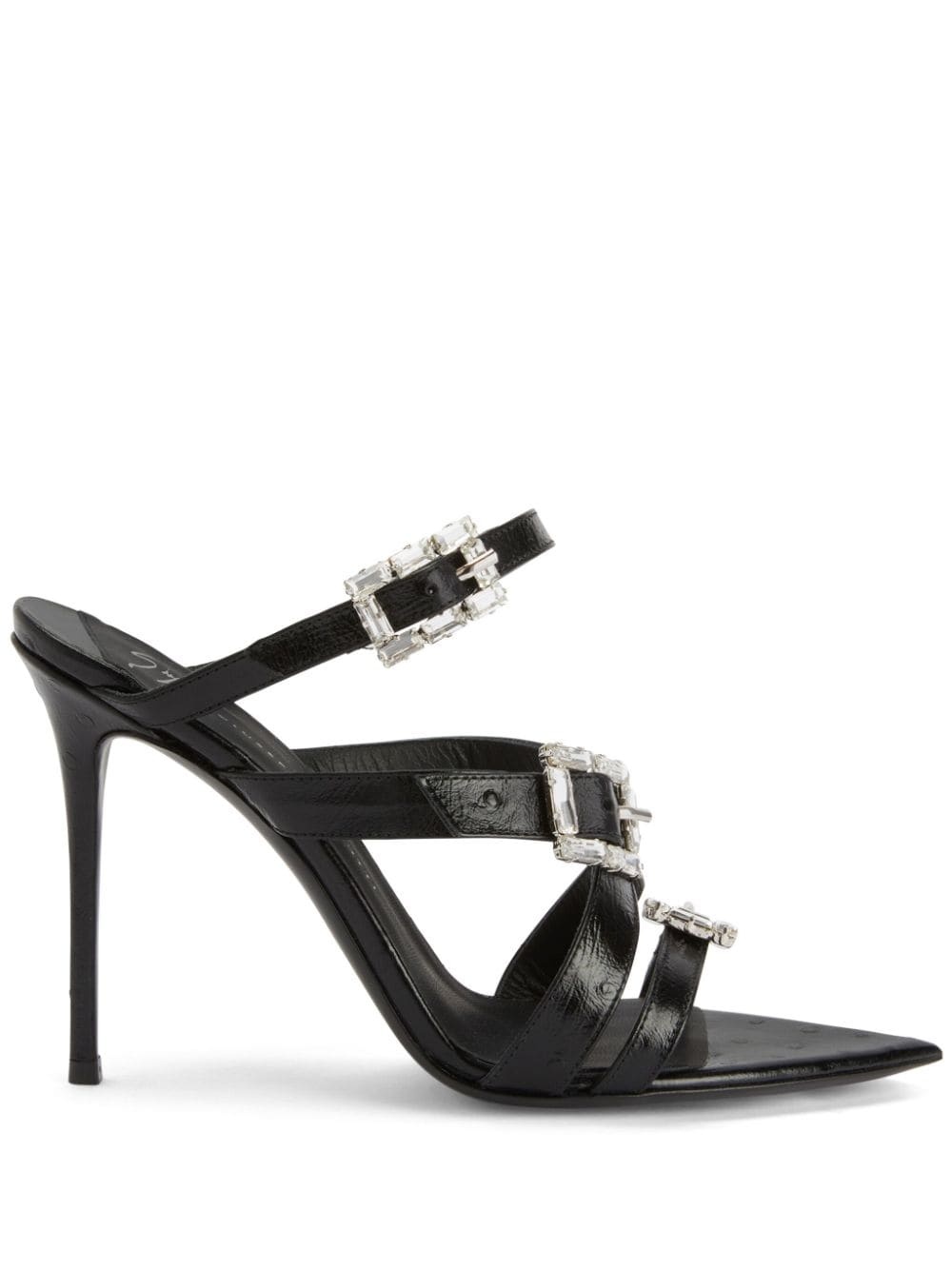 105mm Intriigo Orely sandals Highlights - Black - Leather - Rhinestone embellishment - Open toe - Pointed toe - Buckle-strap fastening - Branded leather insole - 105mm high stiletto heel Made in Italy Composition Outer: Leather 100%, Rhinestone 100%, Metal 100% Sole: Leather 100% Lining: Leather 100% SIZE & FIT Measurement HEEL 4.13 in(10.5 cm)