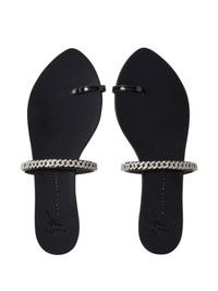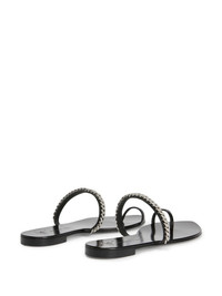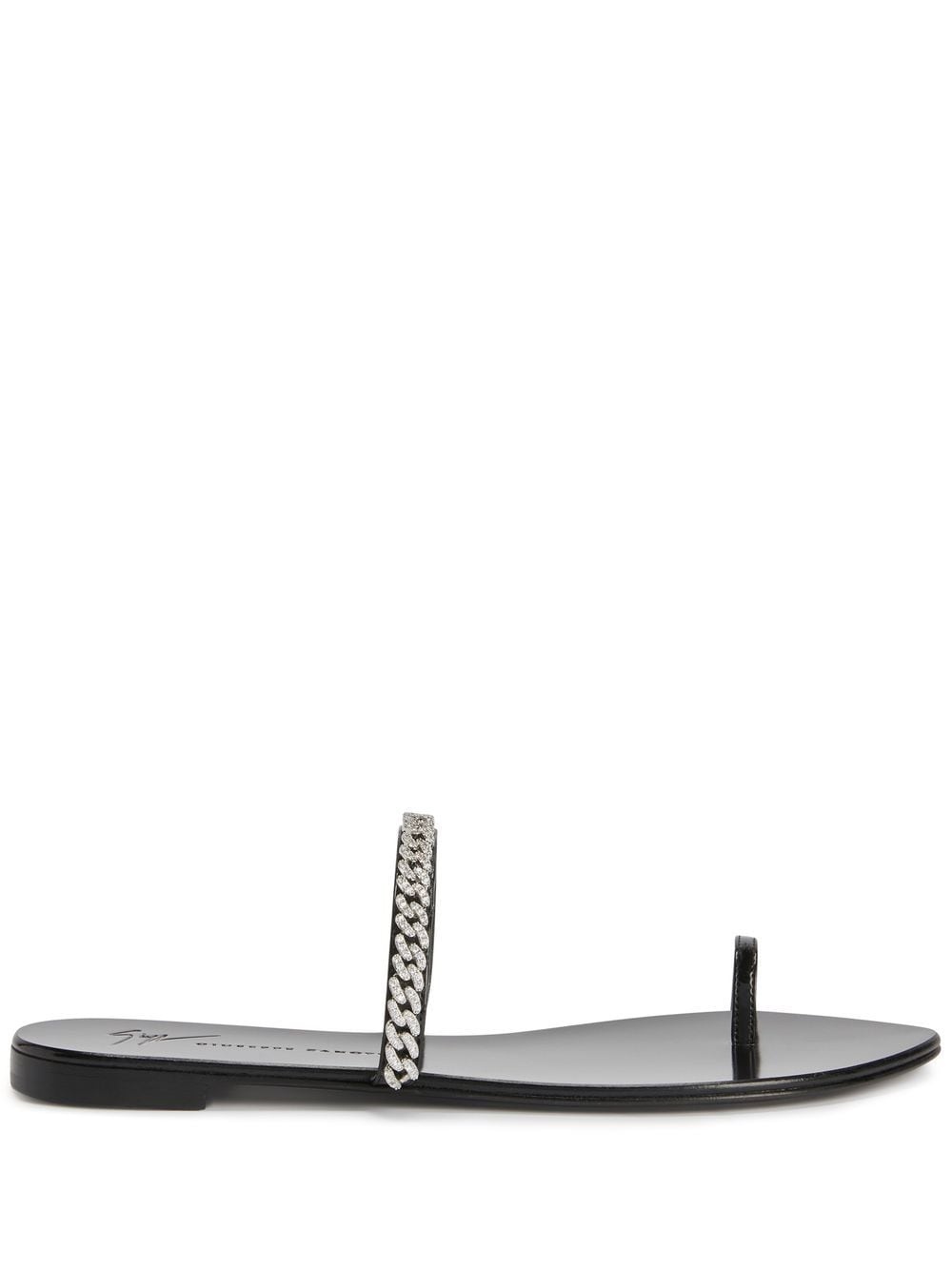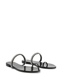 Intriigo String sandals black leather crystal embellishment slip-on style round toe flat sole Made in Italy Composition Outer: Patent Calf Leather 100% Sole: Calf Leather 100% Lining: Calf Leather 100%