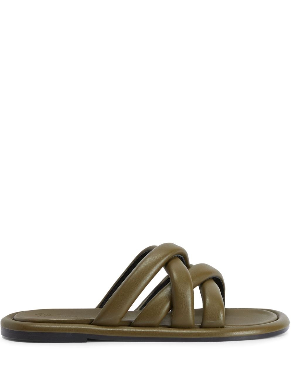 Jacobseen leather sandals Highlights - Olive green - Leather - Padded design - Tonal stitching - Round open toe - Slip-on style - Branded insole - Flat rubber sole Made In Italy Composition Sole: Leather 100% Outer: Polyurethane 100% Lining: Polyurethane 100% SIZE & FIT Measurement HEEL 0.39 in(1 cm)