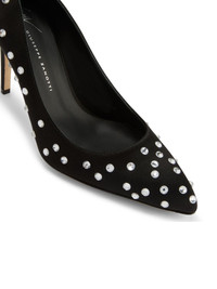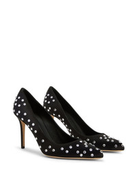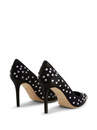 90mm Jakye Precious pumps Highlights - Black - Calf suede - Crystal embellishment - Slip-on style - Pointed toe - 70mm mid heel Made in Italy Composition Outer: Satin 100% Sole: Leather 100% SIZE & FIT Measurement HEEL 2.75 in(7 cm)