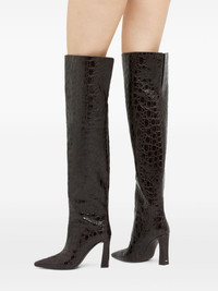 90mm Janiee Plus boots Highlights - Cedar brown - Leather - Snakeskin effect - Pointed toe - High block heel - Knee-length - Slip-on style Made in Italy Composition Outer: Leather 100% Sole: Leather 100% Lining: Calf Leather 100%
