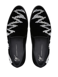 Jareth Shake loafers Highlights - Jareth shake loafers from giuseppe zanotti featuring black, leather, velvet effect, rhinestone embellishment, almond toe, branded insole and flat rubber sole. Made in Italy Composition Outer: Velvet 100%, Rhinestone 100% Lining: Leather 100% Sole: Leather 100% Inner: Leather 100% SIZE & FIT Measurement HEEL 0.78 in(2 cm)