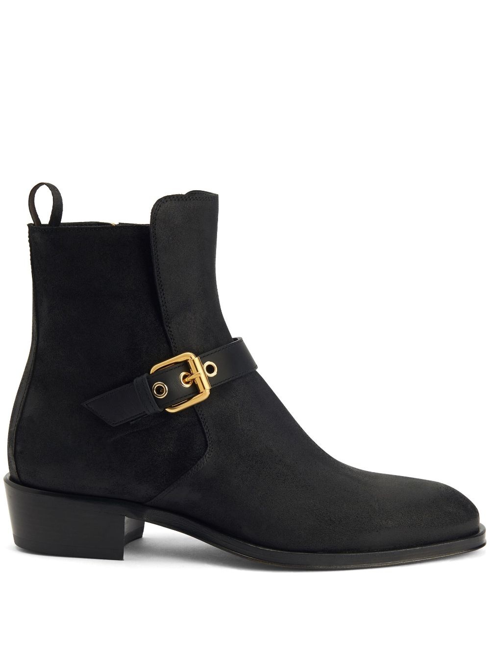 40mm Jhonny leather ankle boots Highlights - Black - Leather - Buckle fastening - Leather strap - Almond toe - Side zip fastening - Ankle-length Made in Italy Composition Outer: Velvet 100% Sole: Leather 100% Lining: Leather 100% SIZE & FIT Measurement HEEL 1.57 in(4 cm)