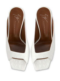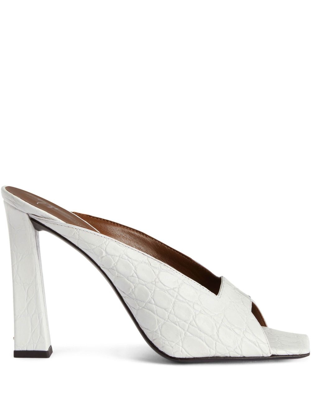 105mm leather sandals Highlights - White - Embossed crocodile effect - Square open toe - High sculpted heel Made in Italy Composition Sole: Leather 100% Lining: Leather 100% Outer: Leather 100% SIZE & FIT Measurement HEEL 4.13 in(10.5 cm)