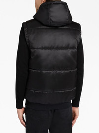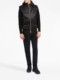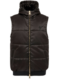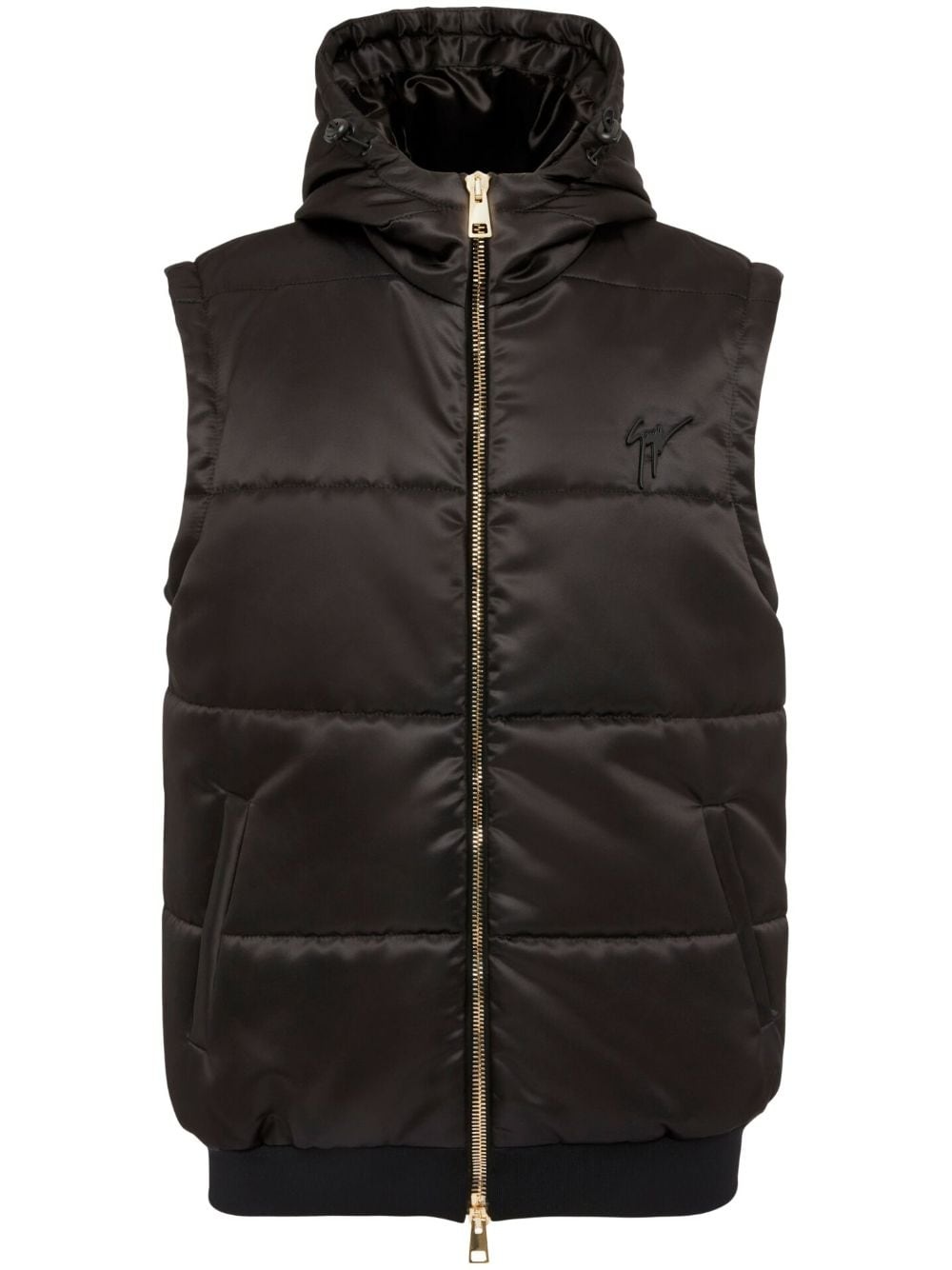 logo-embroidered padded vest Highlights - Black - Padded design - Embroidered logo at the chest - Slouchy hood - Front zip fastening - Two front welt pockets - Sleeveless - Elasticated straight hem Made in Italy Composition Nylon 100%