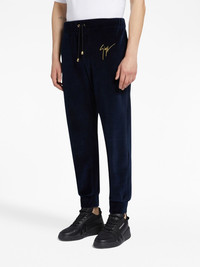 logo-embroidered velvet track pants
