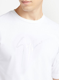 Lr-44 laser-cut T-shirt white cotton laser-cut detail logo print at the chest crew neck short sleeves straight hem Made in Italy Composition Cotton 100%