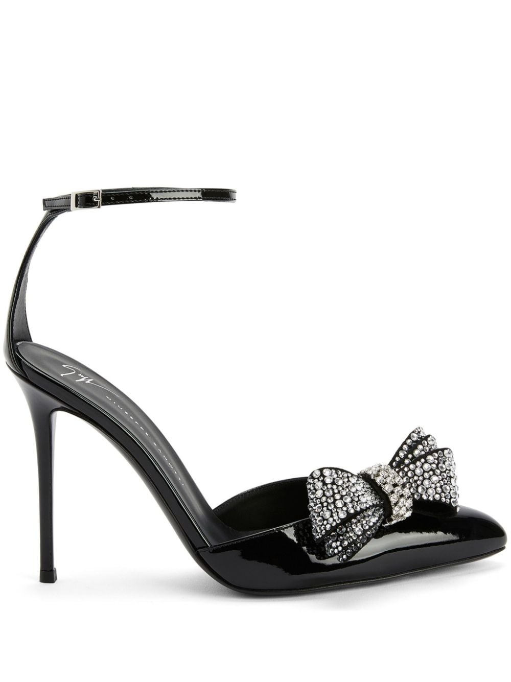 105mm Mahrtina pumps Highlights - Black - Pointed toe - Calf leather - Bow detailing - Crystal embellishment - Buckle-fastening ankle strap - Branded leather insole - 105mm high stiletto heel Made in Italy Composition Suede 100%