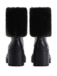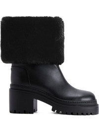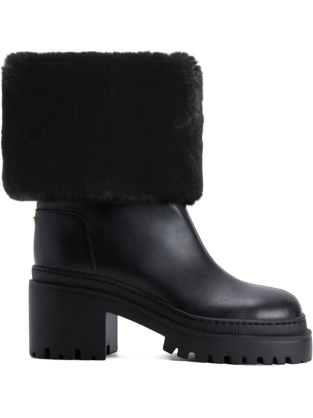 MAIRI fur-cuff boots Highlights - Black - Leather upper - Fur cuff - Rubber lug sole - Block heel - Ankle height Made in Italy Composition Outer: Calf Leather 80%, Sheep Skin/Shearling 20% Lining: Wool 80%, Nylon 20% Sole: Rubber 100%