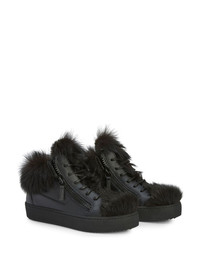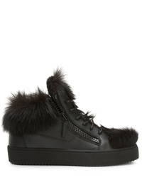Marlena Winter mid-top sneakers black leather shearling lining faux-fur detailing round toe front lace-up fastening decorative zip detailing mid-top design flat rubber sole Made in Italy Composition Leather 100%