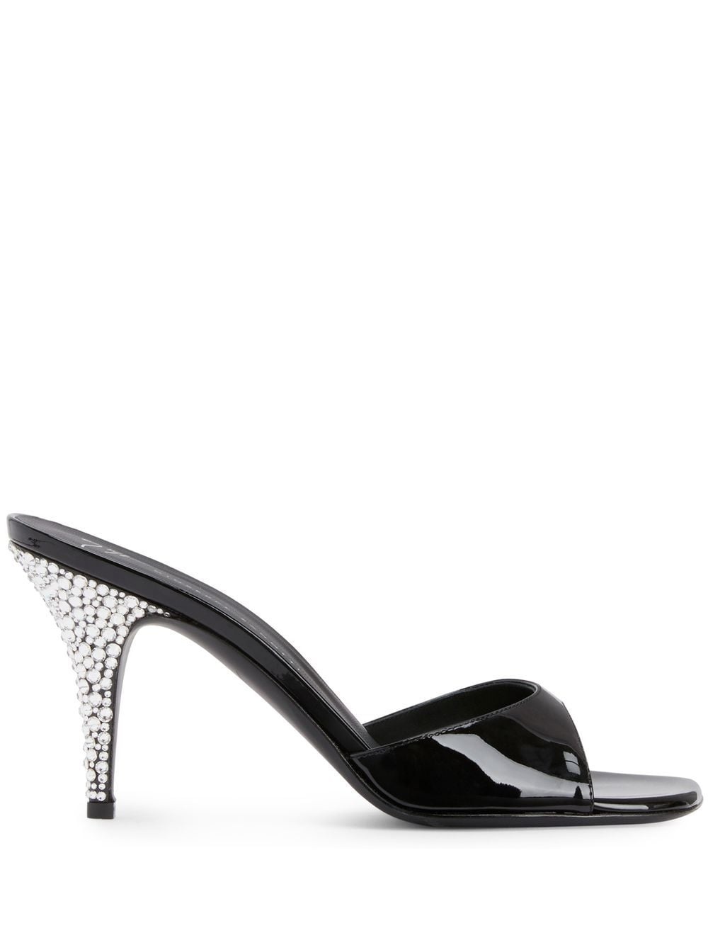 Marthe crystal sandals Marthe crystal sandals from Giuseppe Zanotti featuring black, patent leather, open toe, branded insole, crystal embellishment, high heel and slip-on style. Made in Italy Composition Lining: Leather 100% Sole: Leather 100% Outer: Leather 100%