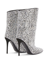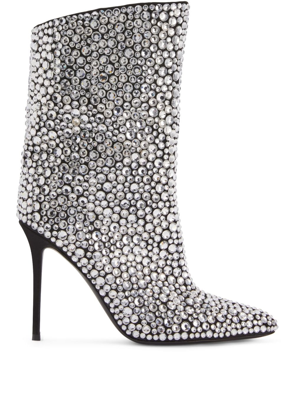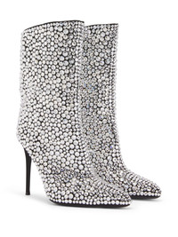 Merissa Sparkle 105mm boots Highlights - Silver-tone - Leather - Crystal embellishment - Pointed toe - Slip-on style - 105mm high stiletto heel Made in Italy Composition Outer: Fabric 100% Sole: Leather 100% SIZE & FIT Measurement HEEL 4.13 in(10.5 cm)