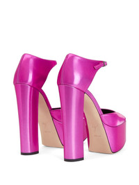 150mm Bebe platform pumps Highlights - Pink - Leather - Metallic effect - Ankle strap - Block heel - Platform sole - Square toe Made in Italy Composition Other fibres 100% SIZE & FIT Measurement HEEL 5.9 in(15 cm) PLATFORM 2.75 in(7 cm)
