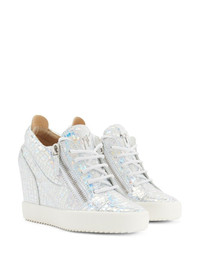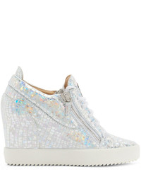 metallic-effect wedge trainers