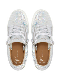 metallic-effect wedge sneakers silver suede metallic effect embossed crocodile effect front lace-up fastening zip details high wedge heel round toe branded insole rubber sole Made in Italy Composition Suede 100%
