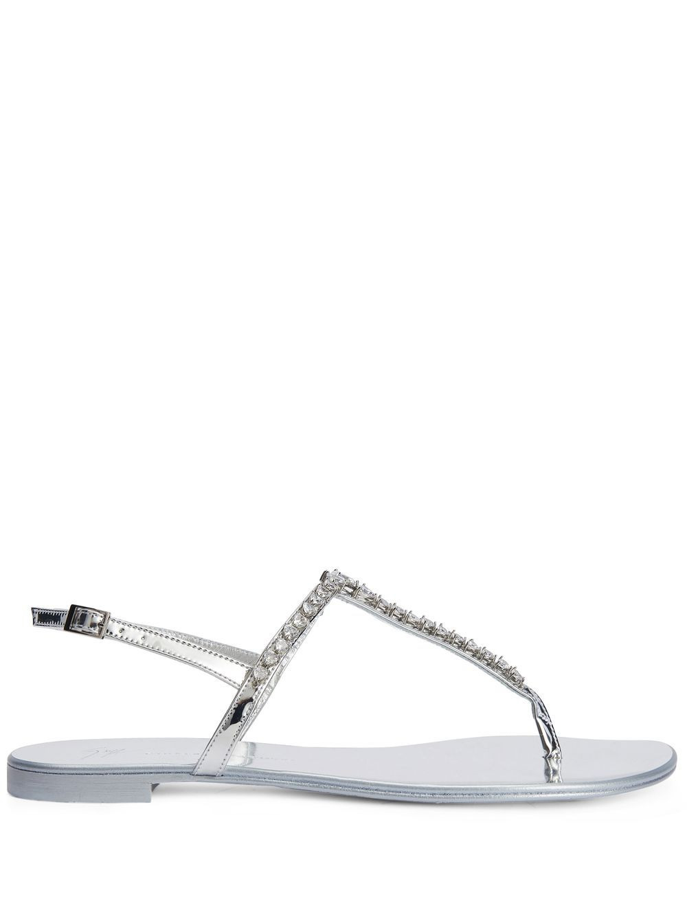 Minnah crystal-embellished sandals silver-tone leather crystal embellishment T-bar strap buckle-fastening ankle strap open toe Made in Italy Composition Other fibres 100%