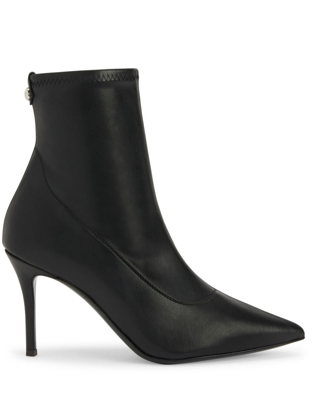 90mm Mirea boots Highlights - Black - Leather - Smooth grain - Tonal stitching - Stud detail - Pointed toe - Side zip fastening - Ankle-length - Branded leather insole - 90mm high stiletto heel - Leather sole Made in Italy Composition Outer: Fabric 100% Sole: Leather 100%