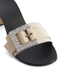 40mm Miss Buckle sandals Highlights - Beige - Leather - Patent finish - Crystal embellishment - Round open toe - Single toe strap - Crystal buckle detail - Branded footbed - 40mm low block heel - Leather sole Made in Italy Composition Outer: Rhinestone 100%, Patent Leather 100%, Crystal 100% Sole: Calf Leather 100% Lining: Calf Leather 100% SIZE & FIT Measurement HEEL 1.57 in(4 cm)