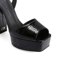 120mm New Betty sandals Highlights - Black - Leather - Embossed crocodile effect - Peep toe - Single toe strap - Buckle-fastening ankle strap - Branded insole - Platform sole - High block heel Made in Italy Composition Other fibres 100% SIZE & FIT Measurement HEEL 4.72 in(12 cm) PLATFORM 1.57 in(4 cm)