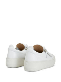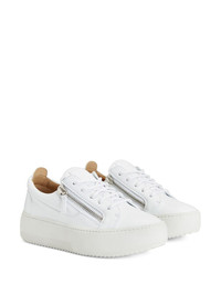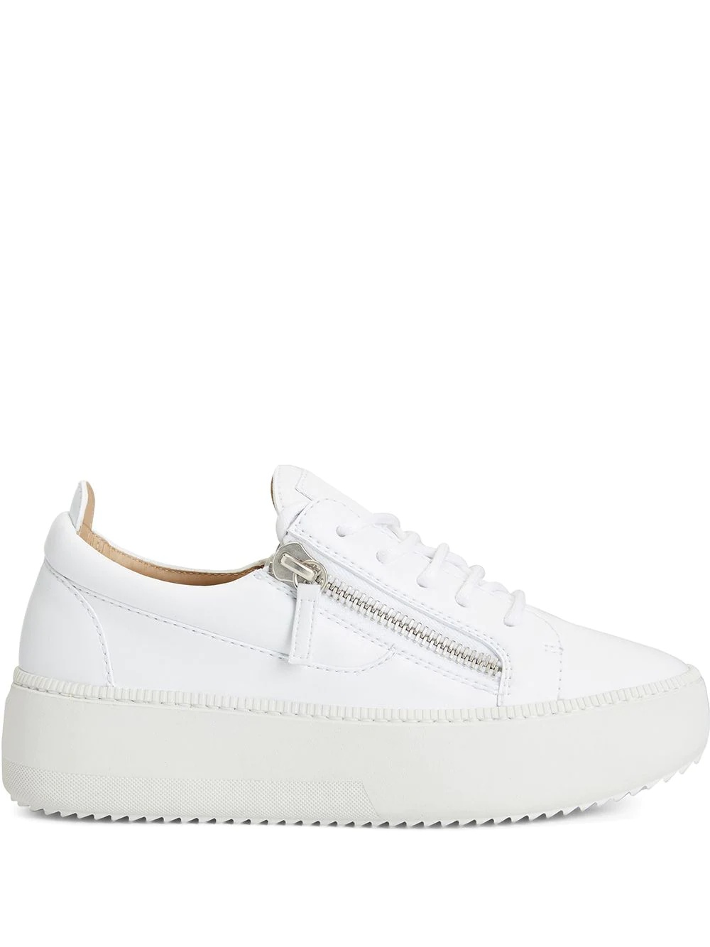 Gail sneakers With a platform sole, these Nicki low-top sneakers from Giuseppe Zanotti offer just the right amount of lift. The sleek style features a lace-up front and two silver-tone zips. Highlights - White - Leather - Silver-tone hardware - Logo-embossed tongue - Round toe - Front zip fastening - Front lace-up fastening - Platform sole - Rubber sole Made in Italy Composition Leather 100%