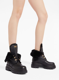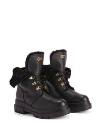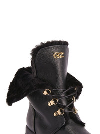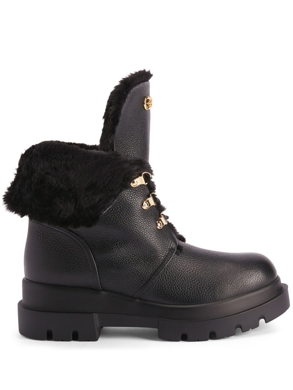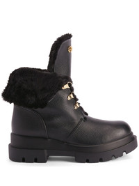 Phillis combat boots Highlights - Black - Leather - Grained texture - Faux-fur lining - Gold-tone logo plaque - Gold-tone hardware - Round toe - Front lace-up fastening - Ankle-length - Chunky rubber sole Made in Italy Composition Leather 100%