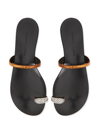 Ring toe strap sandals Highlights - Black/orange - Leather - Glitter detailing - Crystal embellishment - Single toe strap - Round toe - Branded insole - Flat rubber sole Made in Italy Composition Sole: Leather 100% Outer: Fabric 100%, Glitter 100%
