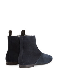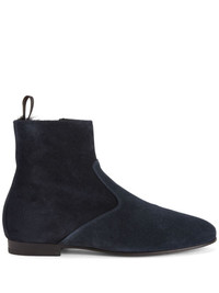 Ron ankle boots Highlights - Navy blue - Leather/velvet - Pull-tab at the heel - Almond toe - Side zip fastening - Branded leather insole - Flat sole Made in Italy Composition Outer: Velvet 100% Sole: Leather 100% Lining: Fabric 100% SIZE & FIT Measurement HEEL 0.59 in(1.5 cm)