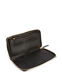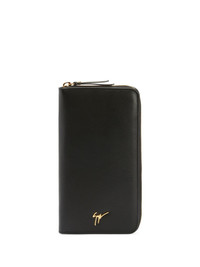 Samuel continental wallet Giuseppe Zanotti's Samuel wallet is crafted from black leather to a continental silhouette that unzips to plenty of handy compartments including six card slots, a document pocket and pen loop to name just a few. A gold-tone applique of the founder’s signature adds personal detail. Highlights - Black - Leather - Gold-tone logo plaque - Internal card slots - Internal note compartments - Internal coin pocket - Internal slip pocket - Internal logo stamp - Internal pen loop - Gold-tone hardware - All-around zip fastening Made in Italy Composition Outer: Leather 100%, Metal 100% Lining: Leather 100%, Fabric 100% SIZE & FIT Measurement DEPTH 1.18 in(3 cm) LENGTH 8.26 in(21 cm) WIDTH 4.33 in(11 cm)