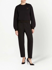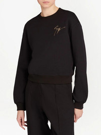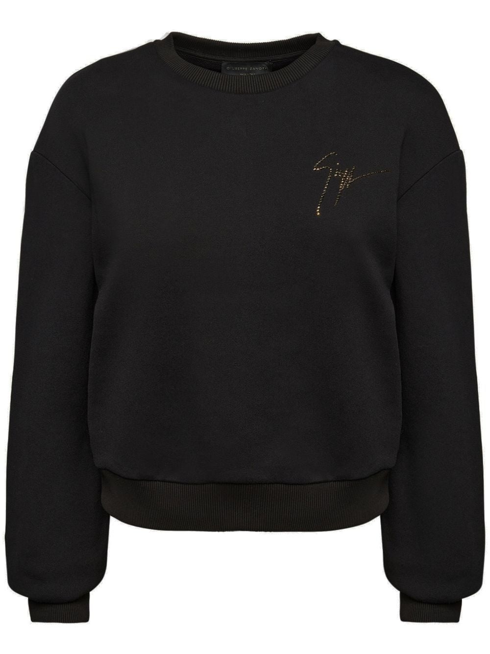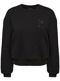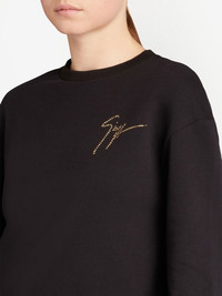 Sauvanne crystal-logo sweatshirt Sauvanne crystal-logo sweatshirt from Giuseppe Zanotti featuring black, cotton blend, crew neck, long sleeves, elasticated cuffs, elasticated hem and crystal-embellished logo. Made in Italy Composition Cotton 70%, Polyolefin 30%