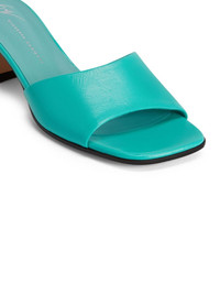 45mm Solhene sandals Highlights - Aquamarine - Calf leather - Open toe - Single toe strap - Branded leather insole - Leather sole - 45mm mid block heel Made in Italy Composition Sole: Leather 100% Outer: Calf Leather 100% Lining: Calf Leather 100% SIZE & FIT Measurement HEEL 1.77 in(4.5 cm)