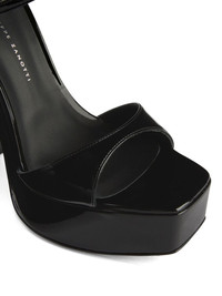 Sylvy 145mm platform sandals Highlights - Black - Leather - Patent finish - Silver-tone hardware - Square open toe - Buckle-fastening ankle strap - Branded insole - 145mm high block heel - Platform sole - Leather sole Made in Italy Composition Other fibres 100% SIZE & FIT Measurement HEEL 5.7 in(14.5 cm)