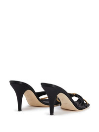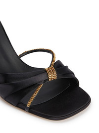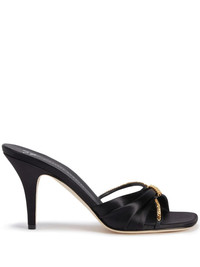 Symonne 85mm mules black leather satin finish chain-link detailing branded insole 85mm heel Made in Italy Composition Outer: Satin 100% Lining: Leather 100% Sole: Leather 100% SIZE & FIT Measurement HEEL 3.34 in(8.5 cm)