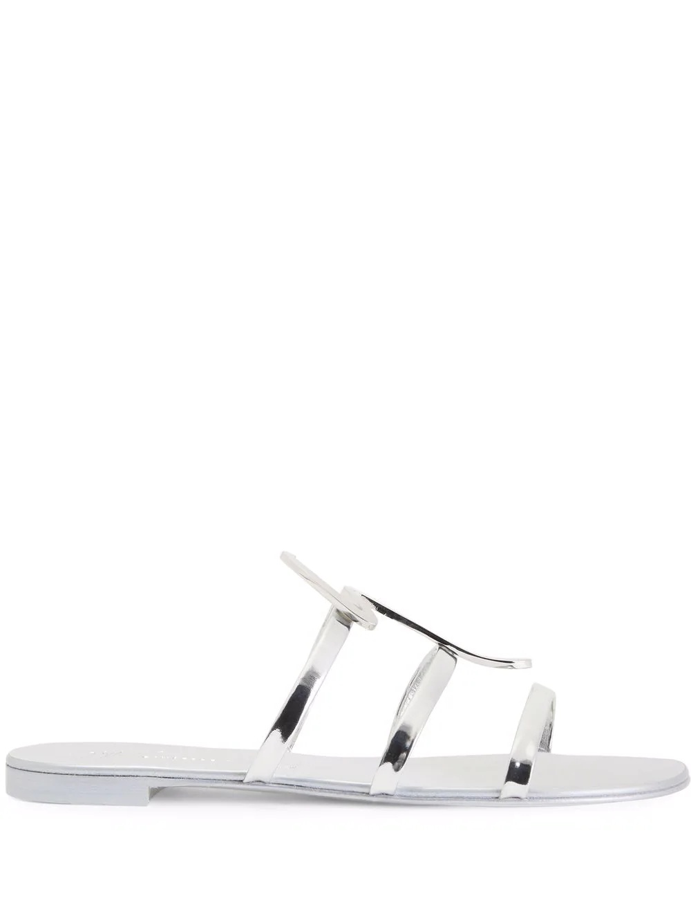 Syrma G-strap sandals silver leather open toe logo plaque slip-on style flat sole Made in Italy Composition Sole: Leather 100% Inner: Leather 100% Outer: Leather 100%