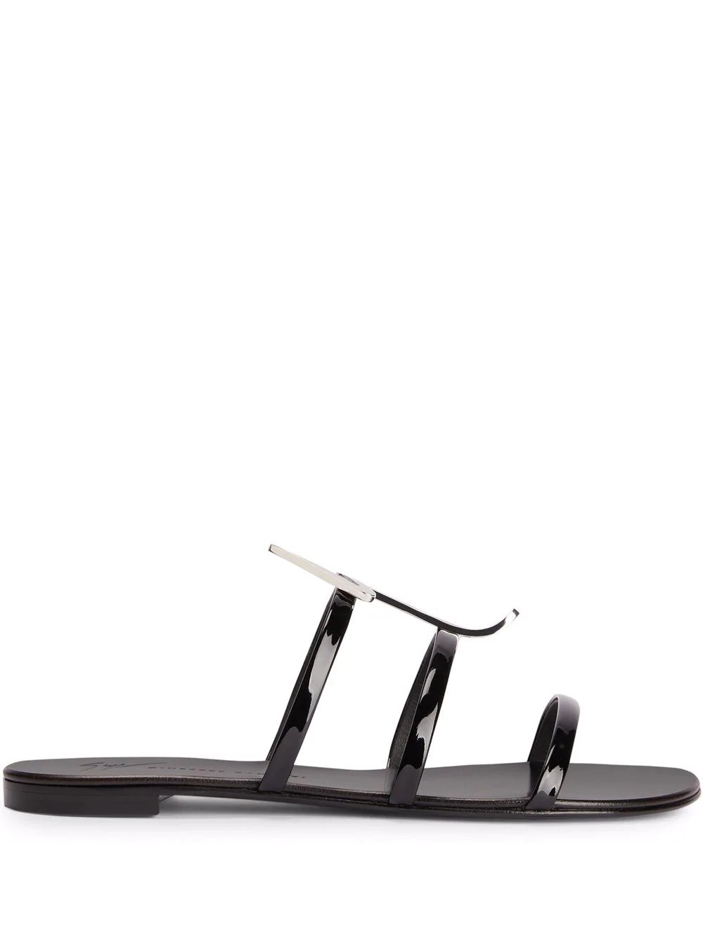 Syrma G-strap sandals black leather logo plaque open toe slip-on style flat sole Made in Italy Composition Sole: Leather 100% Outer: Leather 100% Front: Metal 100%