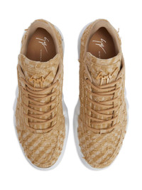 Talon lace-up low-top sneakers Highlights - Camel brown/white - Calf leather - Jacquard - Distressed finish - Logo plaque at the tongue - Rubberised logo detail - Round toe - Front lace-up fastening - Branded leather insole - Chunky rubber sole Made in Italy Composition Outer: Cotton 100% Lining: Fabric 100% Sole: Rubber 100%