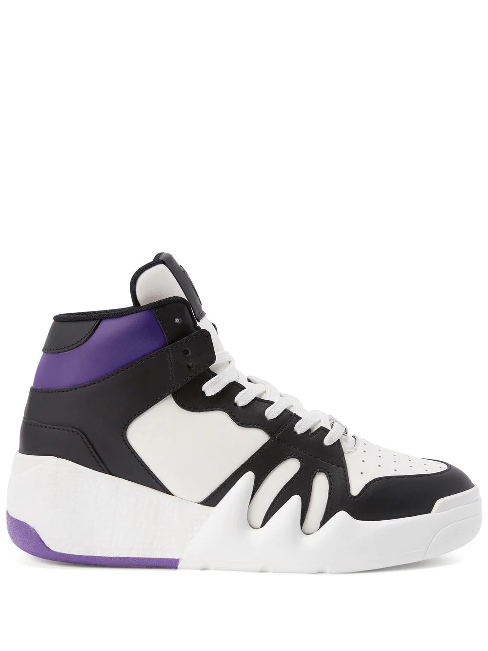 Talon high-top sneakers black/white/purple leather colour-block design perforated detailing round toe front lace-up fastening ankle-length flat rubber sole Made in Italy Composition Leather 100%